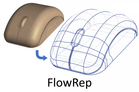 FlowRep is an algorithm for extracting descriptive compact 3D curve networks from meshes of free-form man-made shapes. The output networks provide a concise visual description of the underlying surface and can be used as a compact proxy for shape compression, editing, and manipulation.
