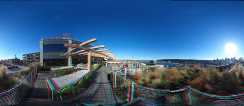 Given two 360º panoramas captured from consumer-grade cameras, this method can stitch an omni-directional stereo panorama by warping the input imagery according to estimated scene geometry.