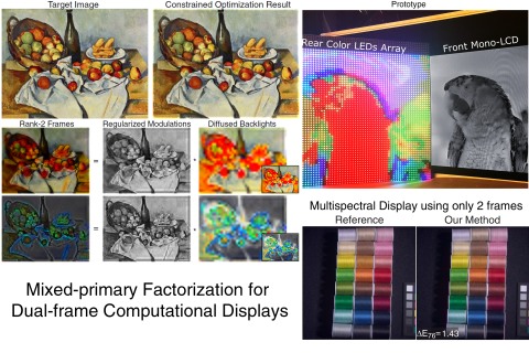 Increasing the resolution and dynamic range of color displays is challenging. Designs are confined by cost and power, and the process requires trade-offs between spatial and temporal resolution for color reproduction. This paper explores hardware-algorithm design to balance such trade-offs by introducing content-adaptive and compressive factorizations to reproduce colors.