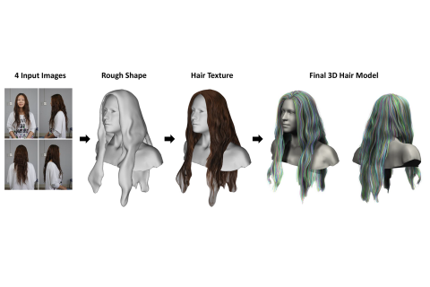 Given four input hair images taken from the front, back, left, and right views, this method computes a complete strand-level 3D hair model that closely resembles the hair in all images.