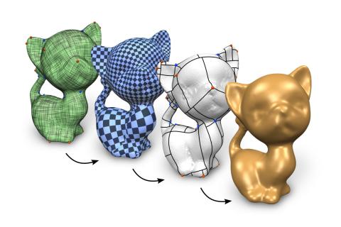 This paper introduces a class of global surface parametrizations (seamless similarity maps) and a class of surface constructions (T-splines with half-edge knots) that are a perfect match for the task of constructing smooth surfaces with any desired topological structure.