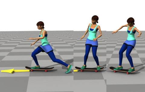 A deep Q-learning-based method for learning a scheduling scheme that reorders short control fragments as necessary at runtime to achieve robust control of challenging skills such as skateboarding.