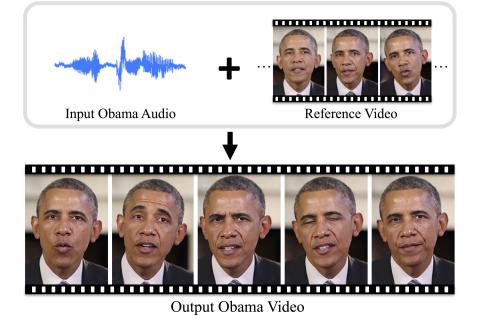 Given audio of President Barack Obama, this work synthesizes photorealistic video of him speaking with accurate lip sync. Trained on many hours of video footage, the recurrent neural-net approach synthesizes mouth shape and texture from audio, which are composited into a reference video.