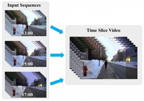 Time-slice photography is a popular effect that visualizes the passing of time by aligning and stitching multiple images together into a single image. This paper extends this effect to video using robust video alignment and proposes an easy-to-use system for creating time-slice videos.