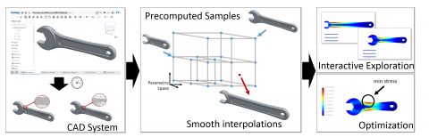 CAD is the world’s preeminent source of parametric data, but harnessing this data is challenging because CAD requires long regeneration times, and resulting meshes have different combinatorics. Using a precomputation-based method and novel interpolation techniques, this work develops tools that allows designers to interactively explore and optimize CAD shapes.